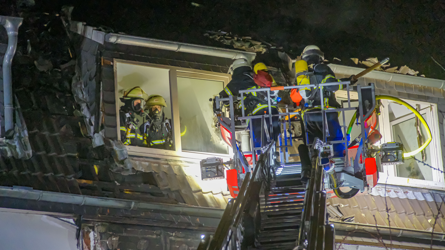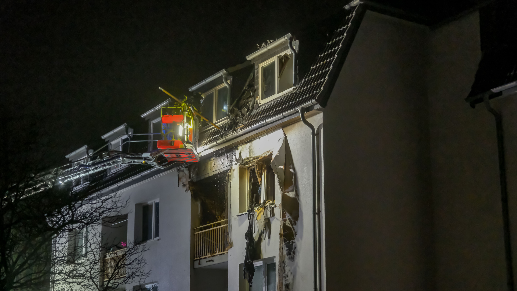 Es brannte eine Wohnung im 2 Stock eines Mehrfamilienhauses, das Feuer breitete sich im Laufe des Einsatzes auf das Dach aus. Das Dach wurde mit Hilfe von 2 Drehleitern aufgenommen. Zur Brandbekämpfung wurden 2 C-Rohre im Innenangriff und 1 C-Rohr im Aussenangriff vorgenommen.